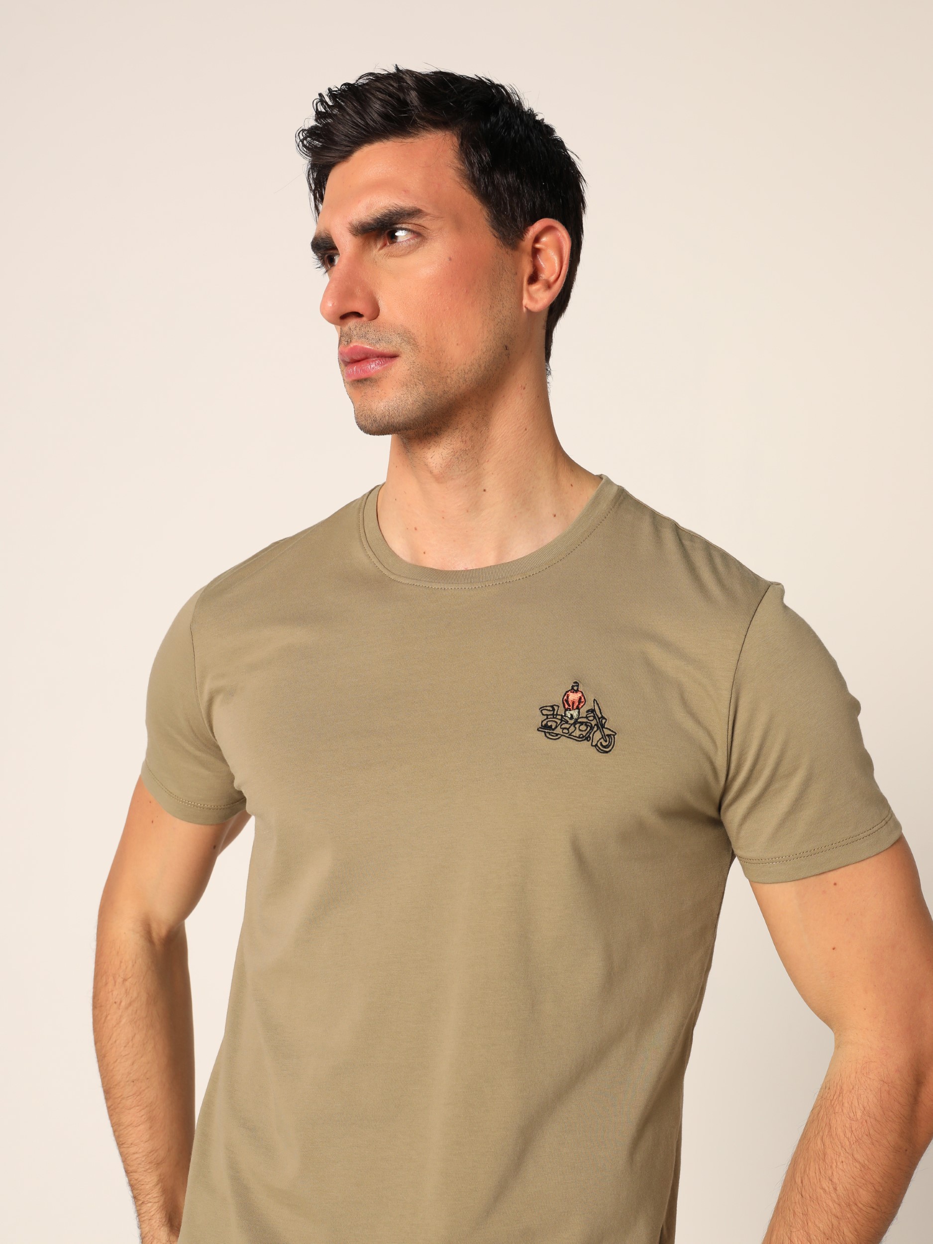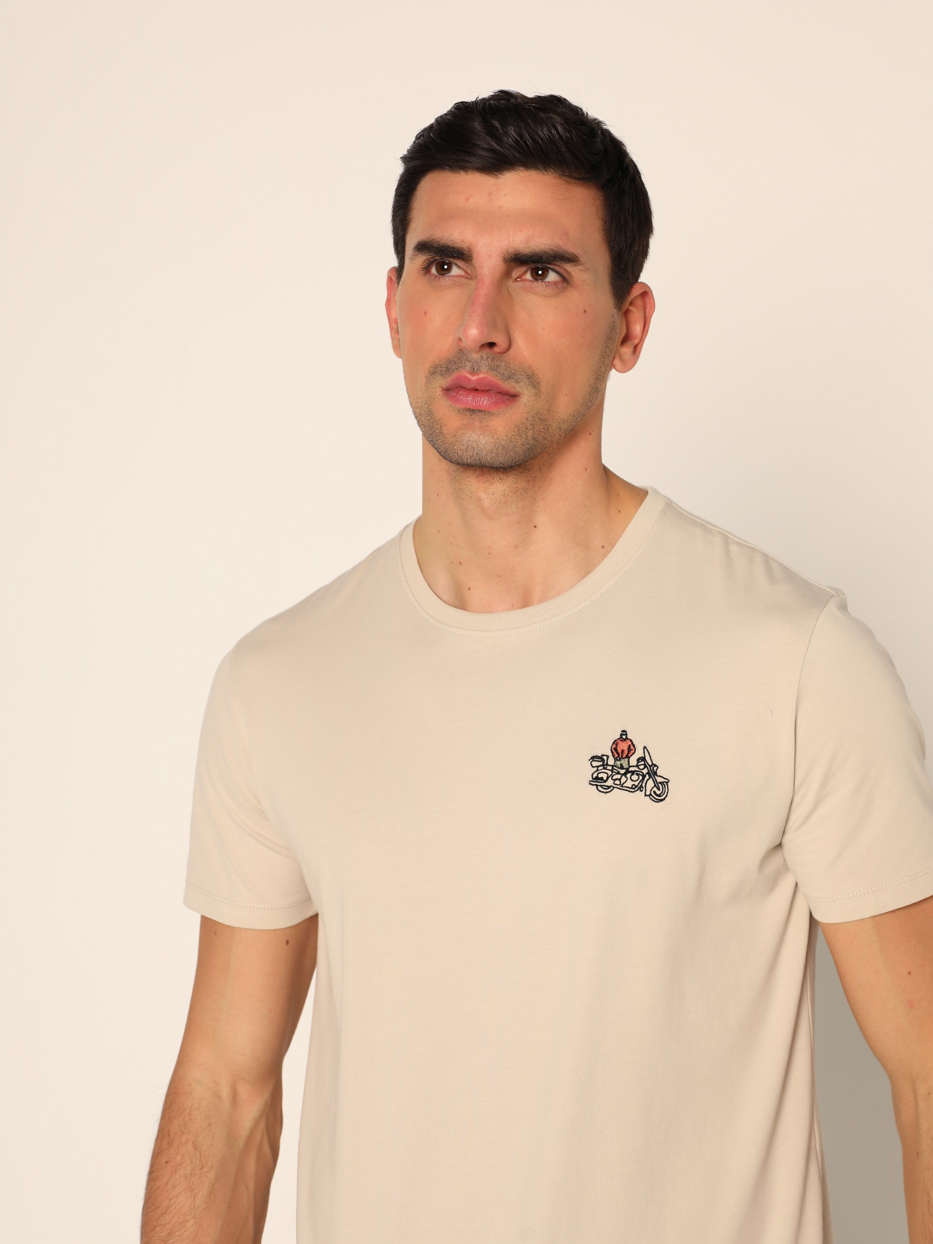 Majica kratkih rukava sa okruglim izrezom i diskretnim vezom na prednjoj strani.