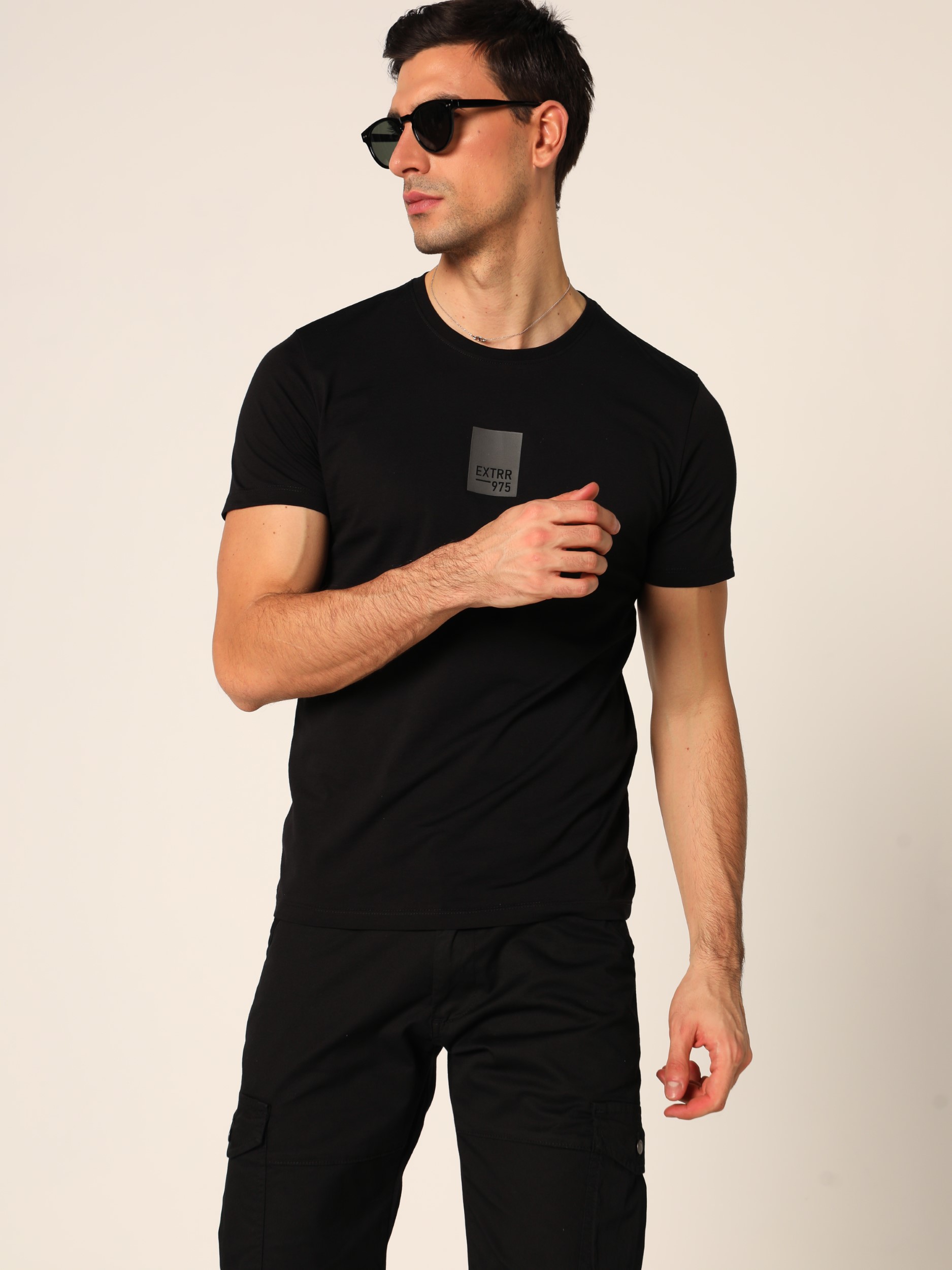Majica kratkih rukava sa okruglim izrezom i aplikacijom na prednjoj strani.