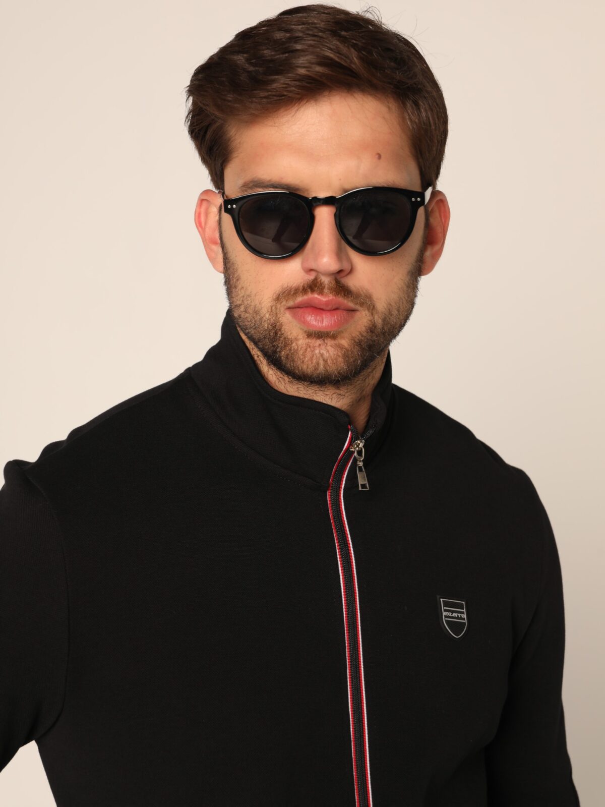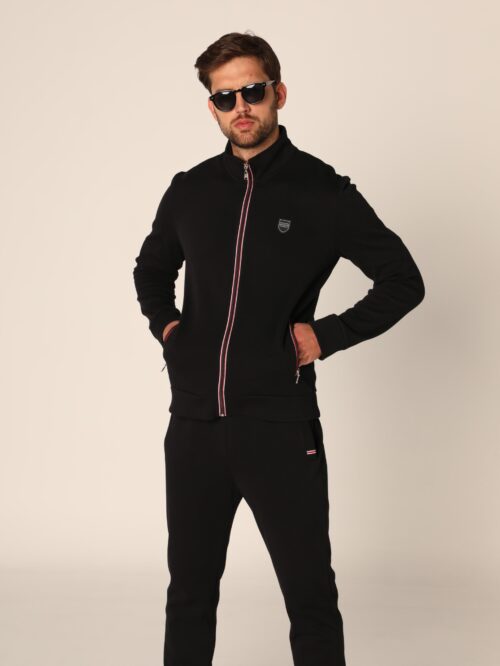 Gornji deo trenerke sa rajsferšlusom i ukrasnim trakama duž kopčanja. Model sa visokim okovratnikom i džepovima sa rajsferšlusom takodje sa trakama. Sa prednje strane dekorativni amblem.