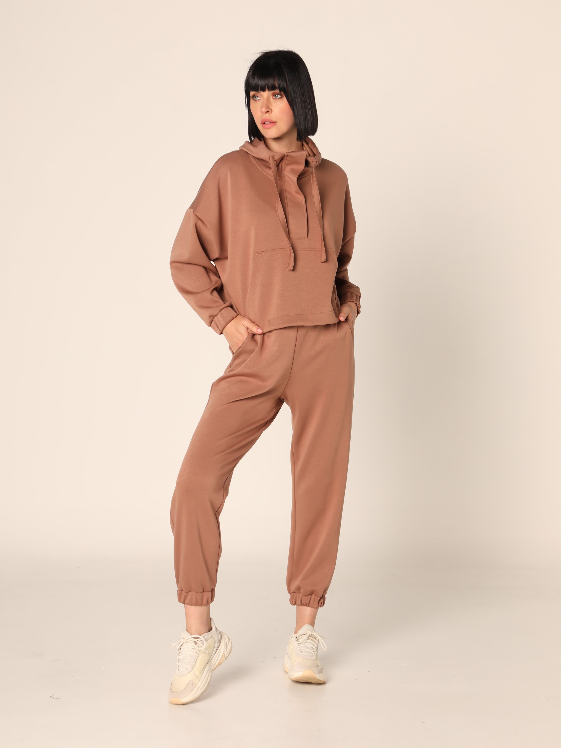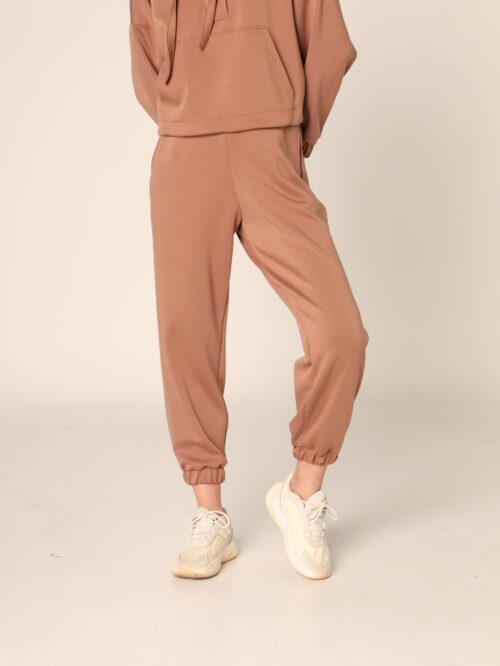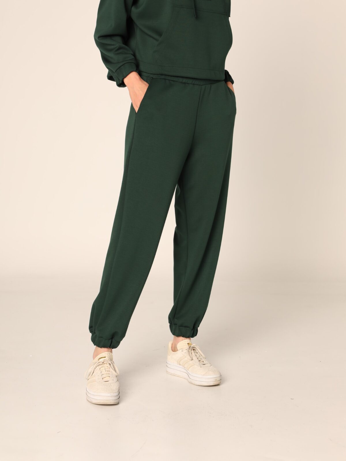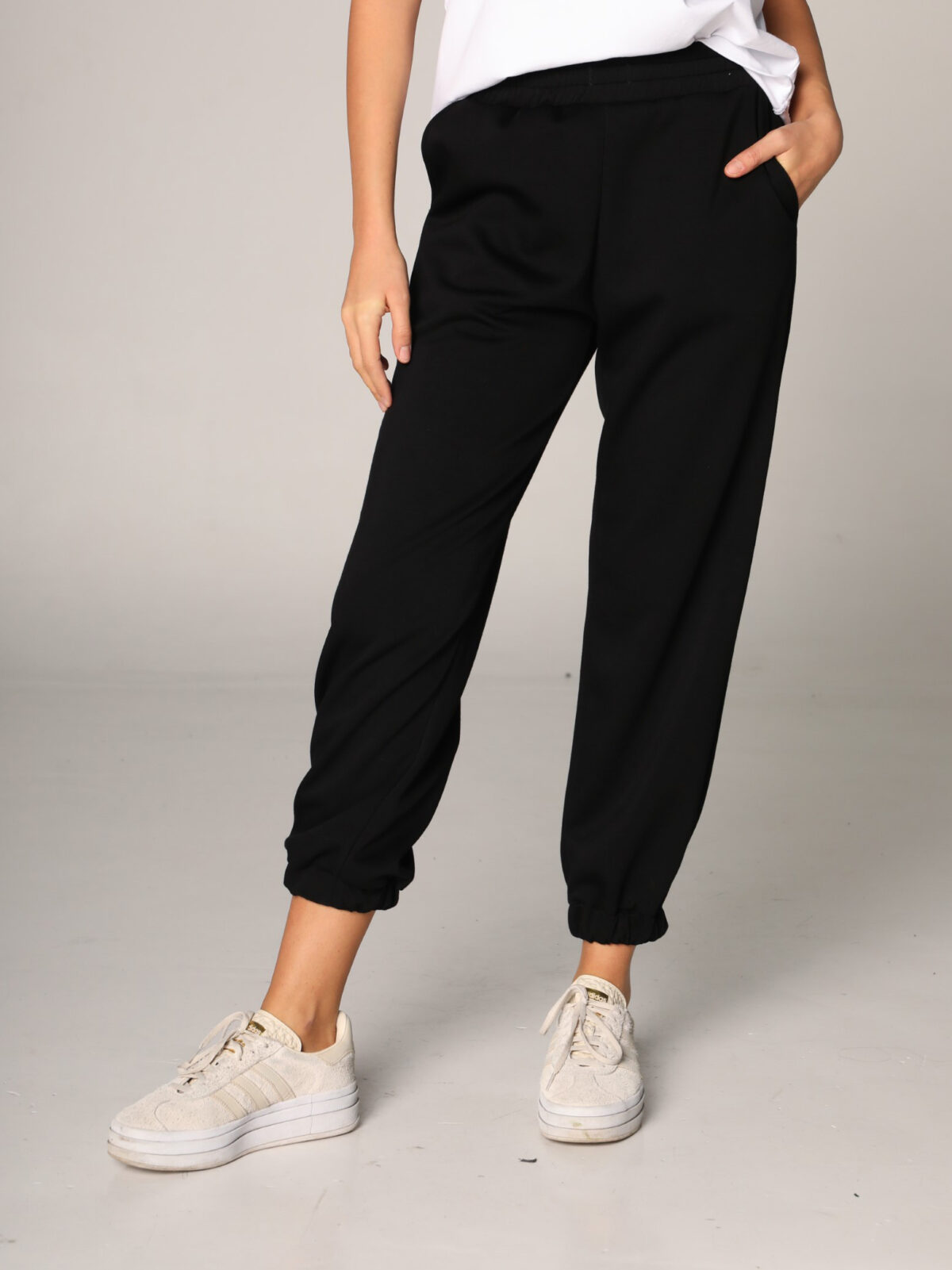 Donji deo trenerke ravnog kroja sa ušivenim lastišem u pojasu i ranflama na nogavicama. Sa strane se nalaze džepovi.
